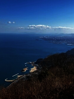 そして、ようやく山頂へ。登り切った時の達成感!そこから見える別府湾〜鶴見・由布岳のなんと美しいこと!国東半島も愛媛・佐田岬もすごく綺麗で感動です。山頂付近には「高崎城」の遺構も見ることができます。ベンチに腰掛け別府湾の風を感じながらホットコーヒーでも飲んだらさどかし美味いだろうなあ、水しか持ってこなかったことを悔やみました。